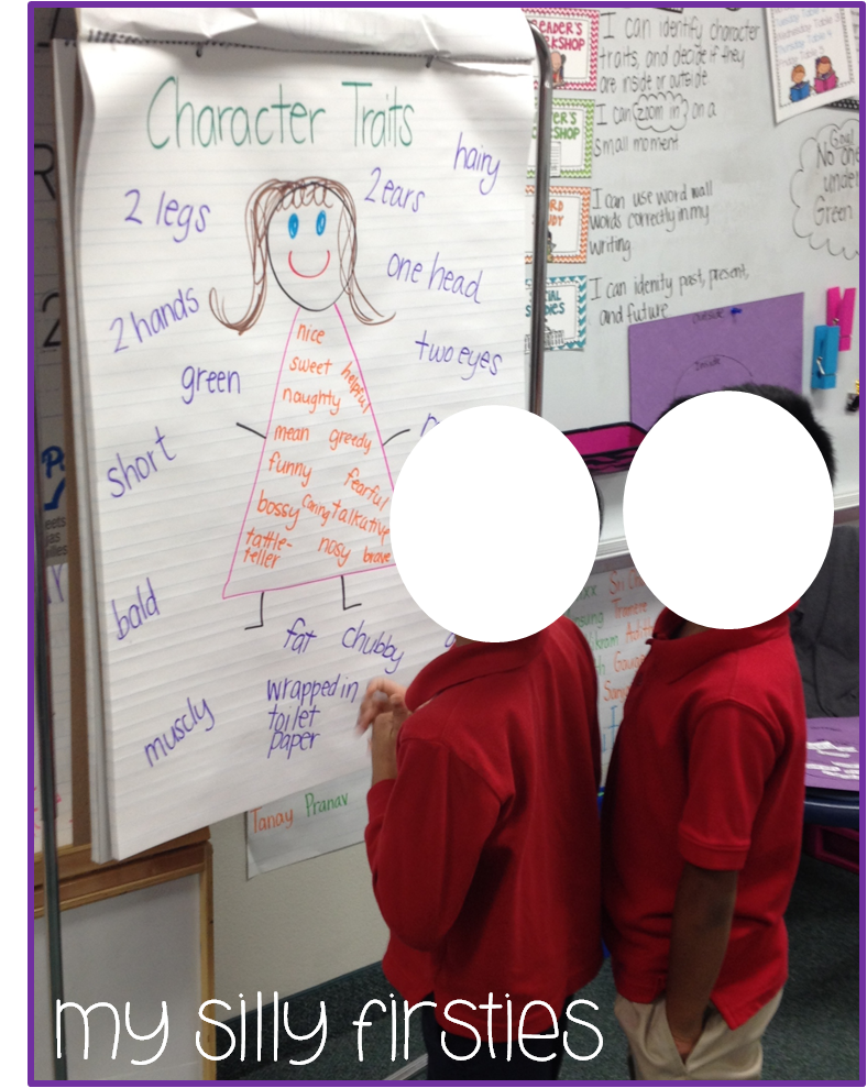 We started learning about character traits....to get some practice, we talked about INSIDE traits, and OUTSIDE traits that you can see. You can LOOK at outside traits, but you FEEL inside traits. I know that technically character traits are just inside...but we needed to talk about the difference.